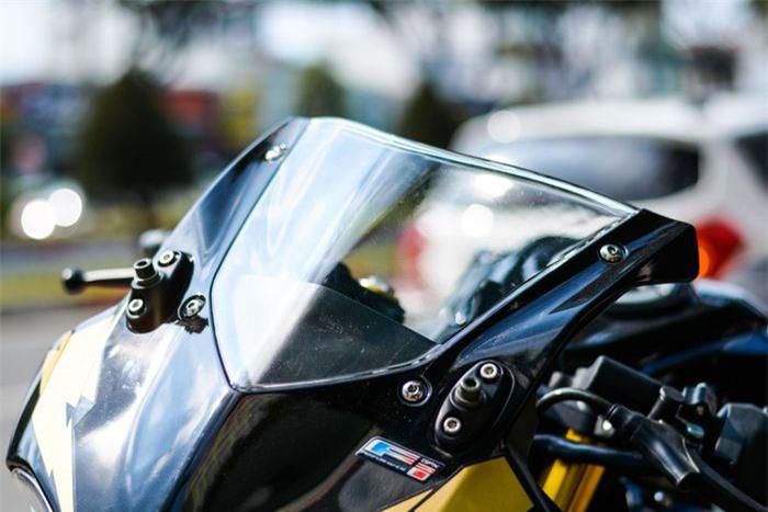 So với các mẫu sportbike 150 cc khác, kính chắn gió trên Demon 150GR khá ngắn và nhỏ. Thiết kế này mang tính trang trí nhiều hơn việc chắn gió khi chạy nhanh.