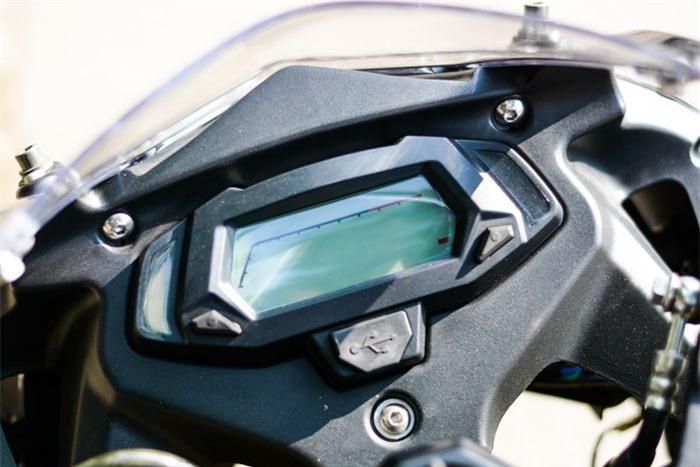 Màn hình tốc độ của Demon 150GR-FI là loại LCD với thiết kế nhỏ gọn tương tự tổng thể xe. Bên dưới màn hình được GPX lắp cổng sạc USB.