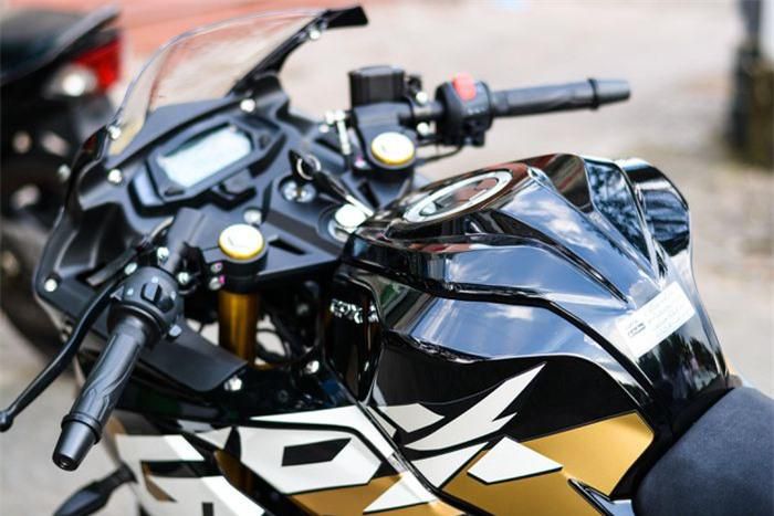 Bình xăng tạo hình thể thao với các đường gân dập nổi chạy dọc từ trước ra sau. Thể tích bình xăng đạt mức 9 lít, thấp hơn mức Suzuki GSX-R150 (11 lít) lẫn Honda CBR150R (12 lít).