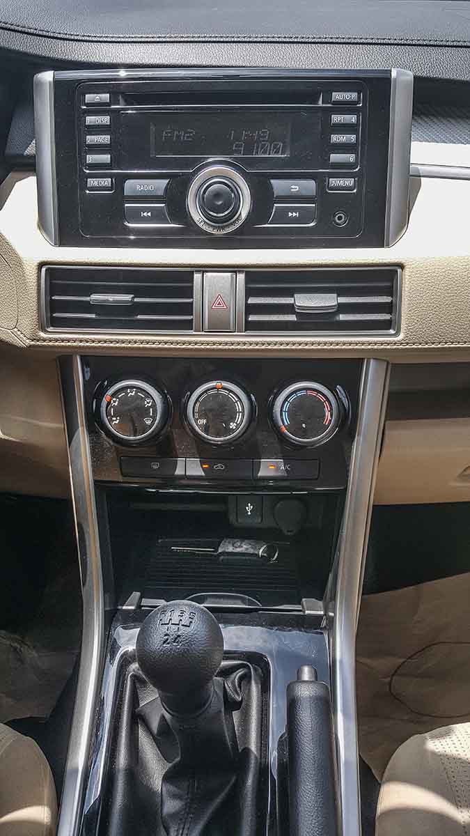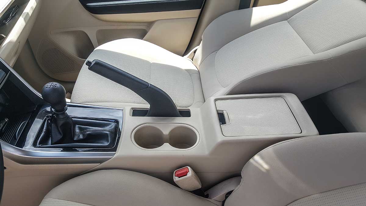 Đầu tiên phải nói đến là nội thất bản MT đúng là không cầu kỳ, không khoa trương, không màn hình hiển thị, không có các nút chức năng trên vô lăng như nút chỉnh âm thanh, đàm thoại rảnh tay và Cruise Control. Trên thực tế, có khá nhiều người rất ít sử dụng những chức năng này khi lái xe, nên với họ, việc có hay không có những nút này trên vô lăng cũng thực sự không quan trọng lắm.