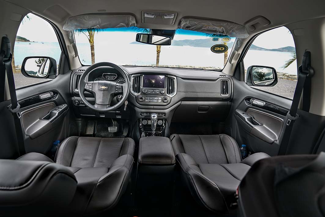 Nội thất xe cũng nhiều tương đồng với chiếc bán tải Colorado và rất Mỹ: Rộng rãi, tiện nghi và thực dụng. Nội thất ghế bọc da với tông màu đen xám như các dòng xe cao cấp. Mặt táp-lô và các chi tiết cửa với vật liệu nhựa nhưng được làm như bằng da. Tuy nhiên điều chúng tôi cảm thấy thoải mái ở đây là sự rộng rãi bên trong một chiếc xe 7 chỗ với nhiều vị trí để đồ khá tiện dụng cho cả 3 hàng ghế. Khoang hành lý phía sau khá rộng đủ để chứa cả núi các túi đồ và cả các thiết bị tác nghiệp của cả nhóm 4 người chúng tôi.