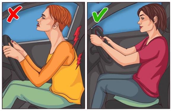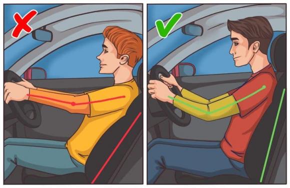 - Đặt tay lên vô lăng. Nếu cánh tay của bạn kéo giãn hoàn toàn và khép lại, điều đó có nghĩa là bạn đang ngồi quá xa. Điều này sẽ gây căng cho cột sống thắt lưng, cổ, vai và cổ tay của bạn.