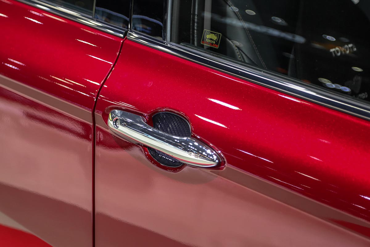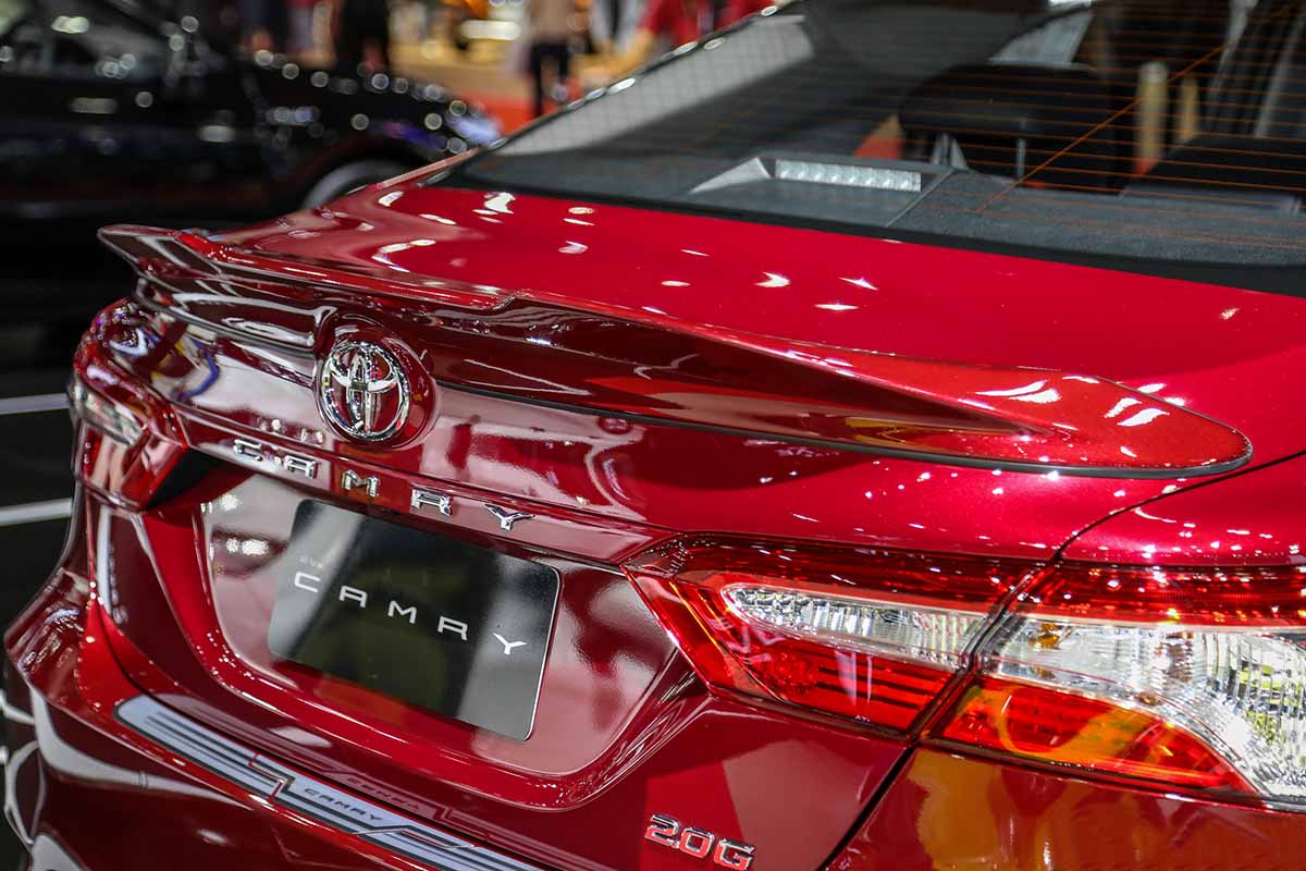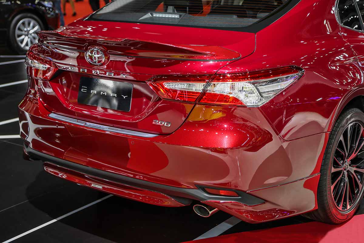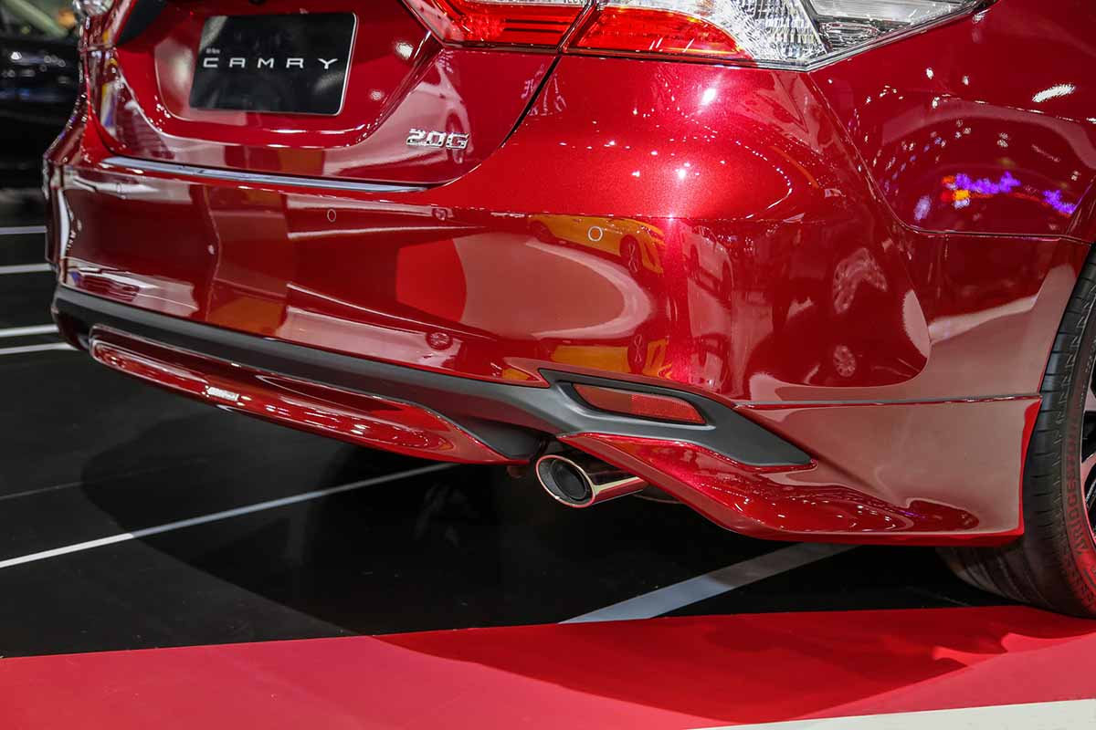 Phần thân xe và đuôi xe cũng được thiết kế 2 tông màu phù hợp với tổng thể chiếc xe. Cản san sau được trang bị thêm cánh gió như vẫn thường thấy trên những dòng xe đọi thể thao. Đặc biệt những phụ kiện để nâng cấp chiếc Camry này cũng khá sẵn để đáp ứng cho tính cá nhân hoá của khách hàng.
