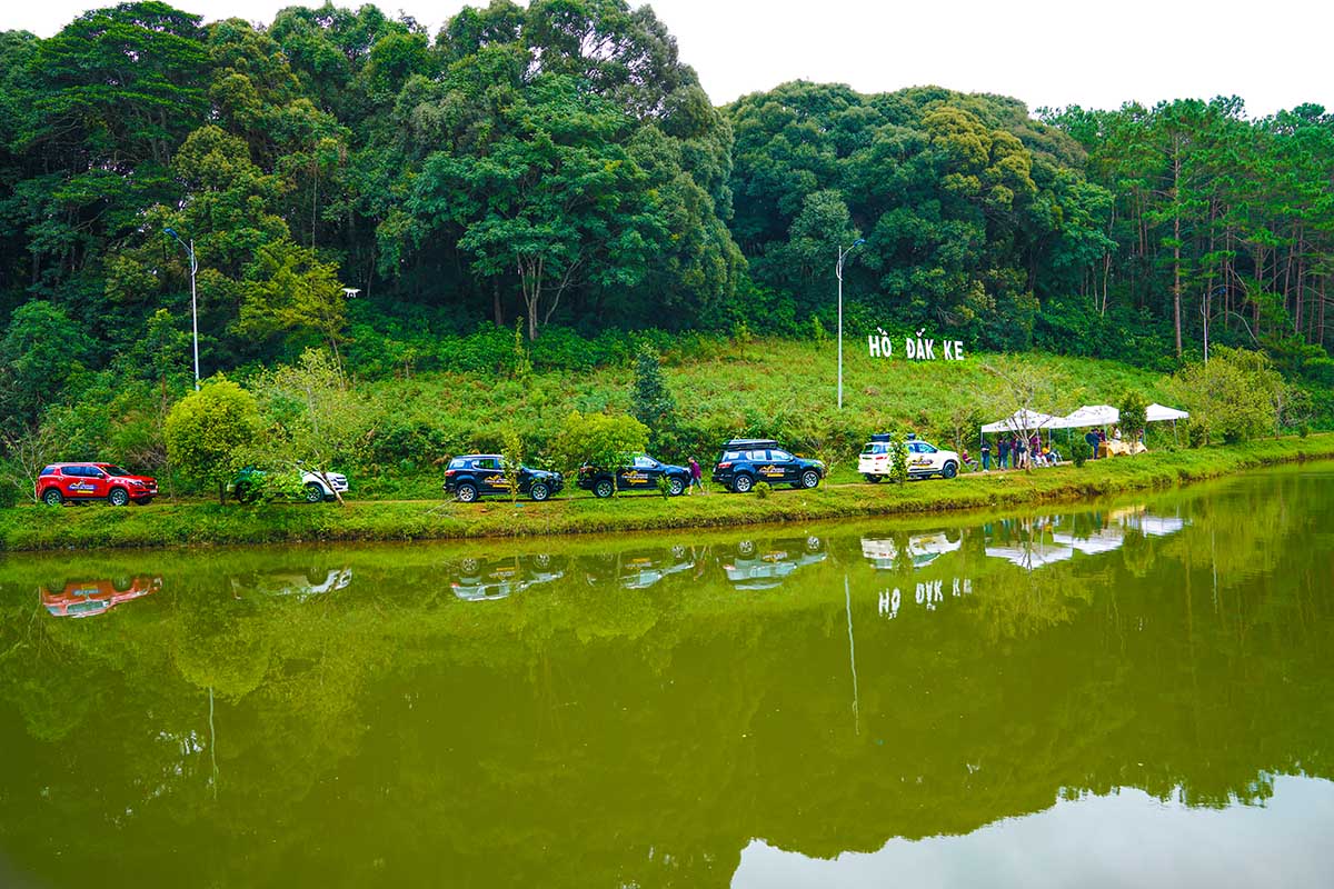 Ăn trưa ngoài thiên nhiên giữa rừng bên hồ Đak Ke (Kon Tum) cũng là một trải nghiệm thú vị về phong cách dã ngoại kiểu Mỹ. Tuy nhiên điều này đối với một số người còn bỡ ngỡ với việc phải tự thân vận động do thường quen có người phục vụ. Thú thực, may mà chúng tôi đã được team tổ chức cảnh báo trước là ngày đầu chỉ có tâp trung vào lái, lái và lái thôi, nên kỳ vọng được khám phá vẻ đẹp về cảnh quan Pleiku là tan biến, đến ngay những háo hức để gặp “em Pleiku má đỏ môi hồng… mà có em đời còn dễ thương” trong bài hát "Còn gì để nhớ" mà chị Thuỷ Phạm chia sẻ, cũng chẳng có dịp.