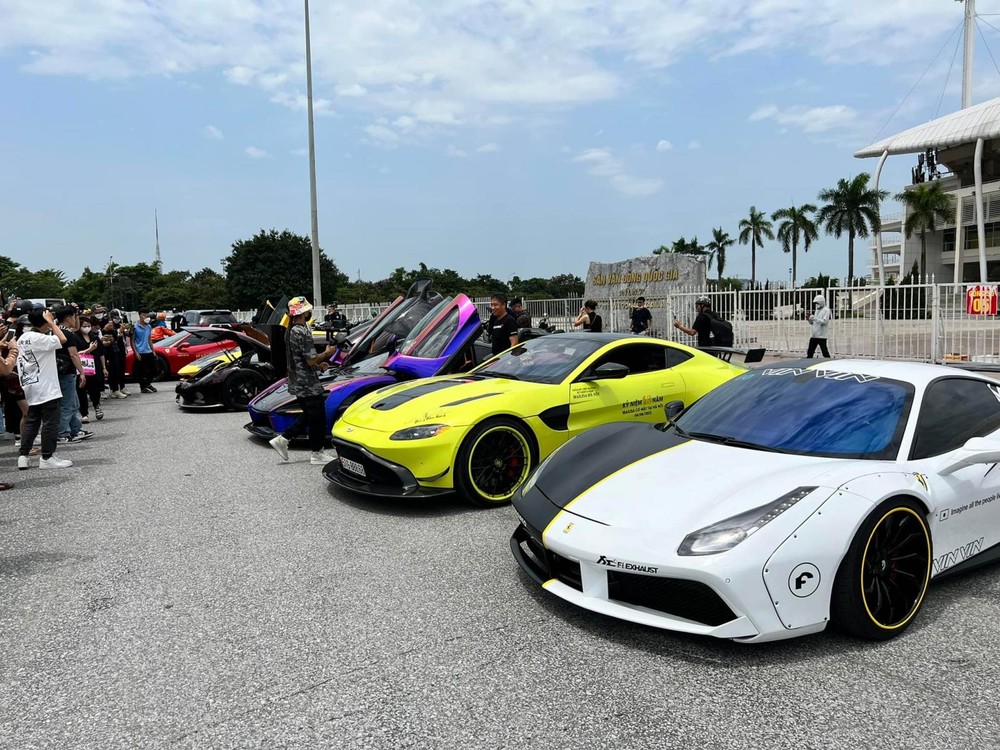 Dàn siêu xe của Hoàng Kim Khánh và bạn bè thu hút sự chú ý của người dân