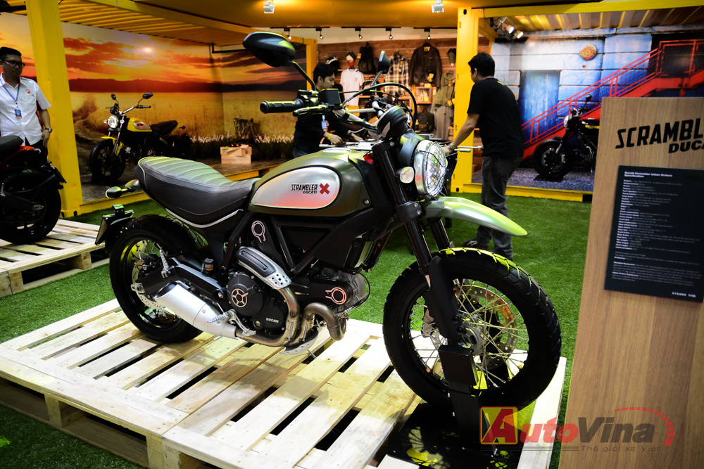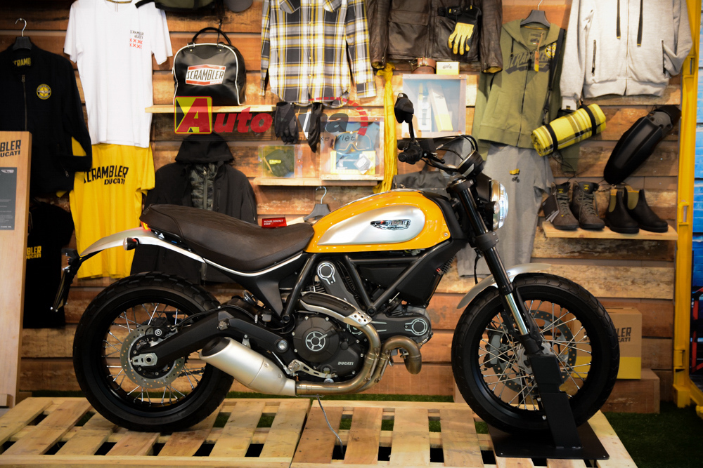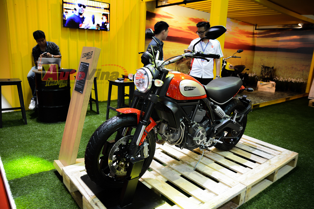 Ngoài ra, khu vực trưng bày dòng xe Scrambler 2015 cũng là một điểm nhấn khác của Ducati. Toàn bộ 4 phiên bản Scrambler đều hiện diện đầy đủ.