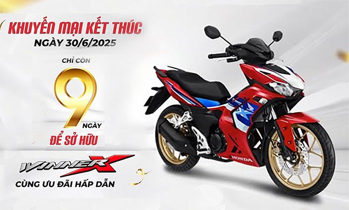 Chỉ còn ĐÚNG 9 ngày từ nay đến 30/06/2025, để có được một chiếc WINNER X với ƯU ĐÃI lên tới 12.xxx.xxx Triệu Đồng và HỖ TRỢ LỆ PHÍ ĐĂNG KÝ TRỊ GIÁ 4 TRIỆU ĐỒNG hoặc TRẢ GÓP 0% LÃI SUẤT.