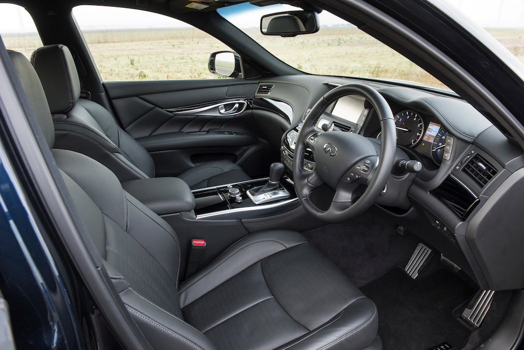 Ngay cả ở trên phiên bản 2.2l rẻ nhất, Infiniti đã trang bị cho Q70 những chi tiết cao cấp như đèn pha LED, camera lùi, cảm biến đỗ xe trước và sau, hệ thống dẫn đường Connectiviti+ và ghế da với quạt thông gió. Các phiên bản cao cấp hơn sẽ còn có thêm nhiều tuỳ chọn hiện đại như gói trang bị Dynamic Safety Shield (gồm hệ thống kiểm soát hành trình thông minh, hệ thống hỗ trợ chuyển làn và hệ thống hỗ trợ quan sát điểm mù), dàn âm thanh Bose 16 loa, hệ thống quan sát điểm mù,...