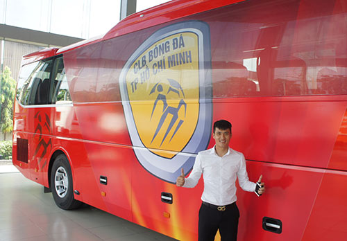Sáng 22/3, quyền chủ tịch Lê Công Vinh cùng các cầu thủ CLB TP HCM đã đi nhận chiếc xe buýt mới của tân binh V-League 2017