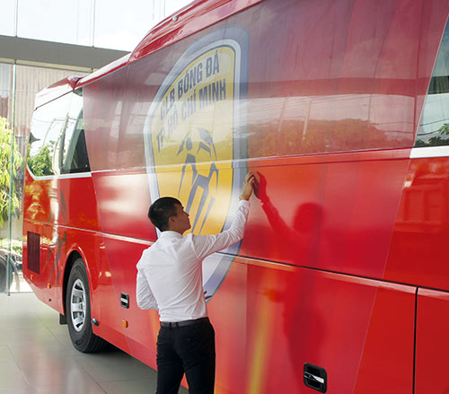 Quyền Chủ tịch Lê Công Vinh tiếp tục chi đậm để mua xe mới cho đội bóng CLB TP.HCM, với logo được in lớn trên thân xe nhìn khá giống phong cách của những đội bóng ở châu Âu.