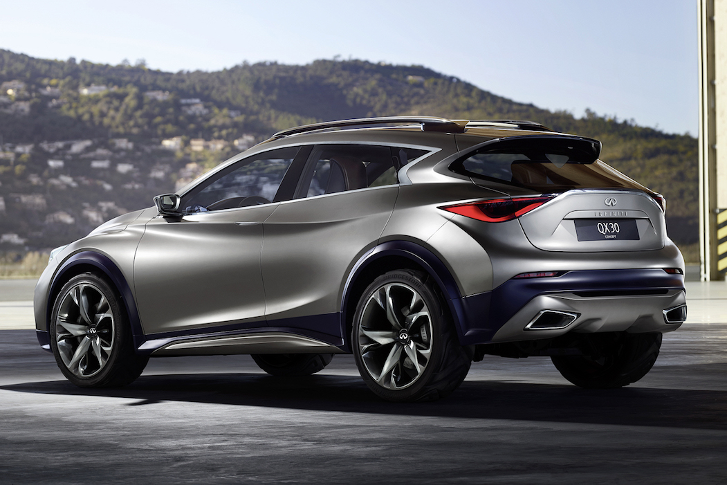 Về cơ bản, QX30 là phiên bản crossover của mẫu concept Q30 đã từng được Infiniti ra mắt tại triển lãm Frankfurt hồi năm 2013. Mặc dù mới chỉ tung ra duy nhất một bức ảnh từ góc 3/4 phía sau của chiếc xe, nhưng từ đó ta có thể thấy rằng QX30 sẽ là một mẫu crossover cỡ nhỏ hạng sang hấp dẫn, với thiết kế hiện đại và uyển chuyển theo phong cách mới nhất của Infiniti. Tuy nhiên là một mẫu concept, chiếc xe vẫn sẽ có những chi tiết ấn tượng nhưng sẽ không xuất hiện trên phiên bản sản xuất hàng loạt, có thể kể tới gồm mâm 21 inch tiện từ nhôm, hay những tấm ốp bằng sợi carbon xung quanh xe.