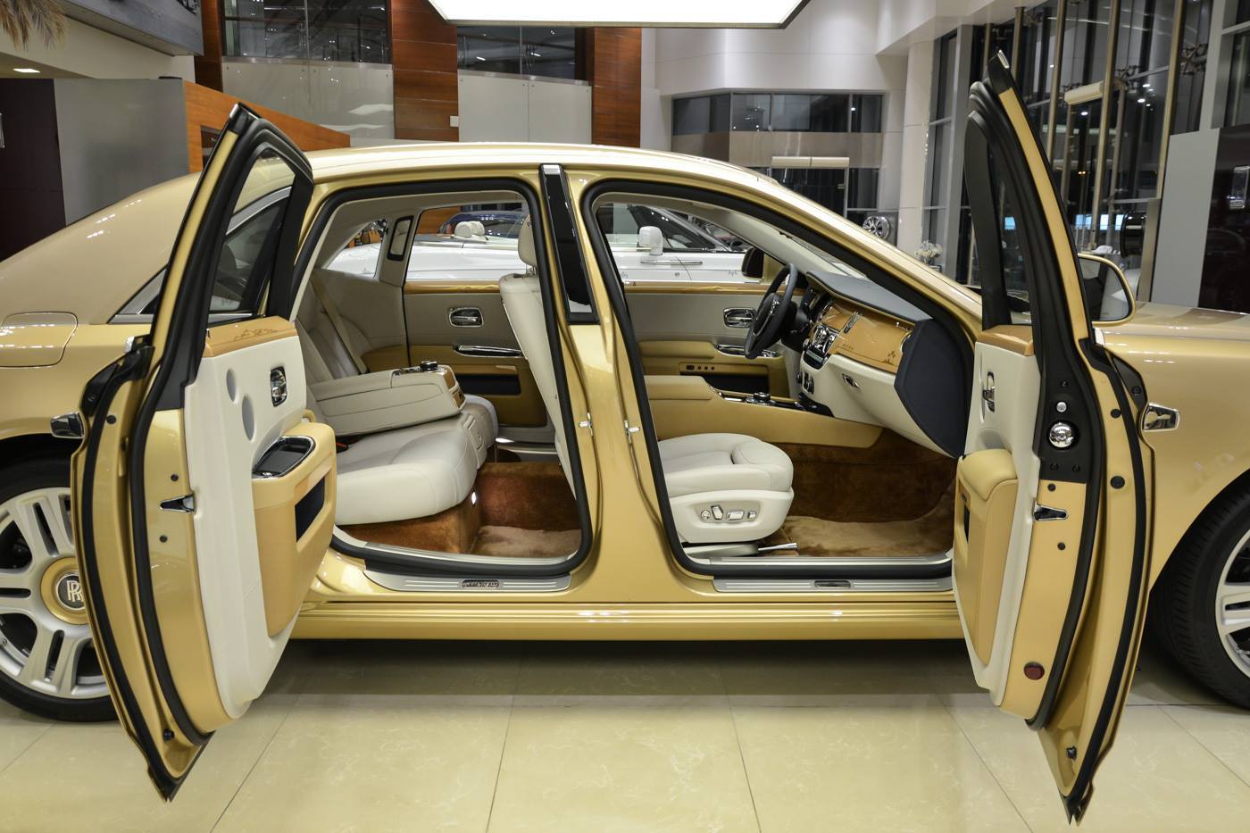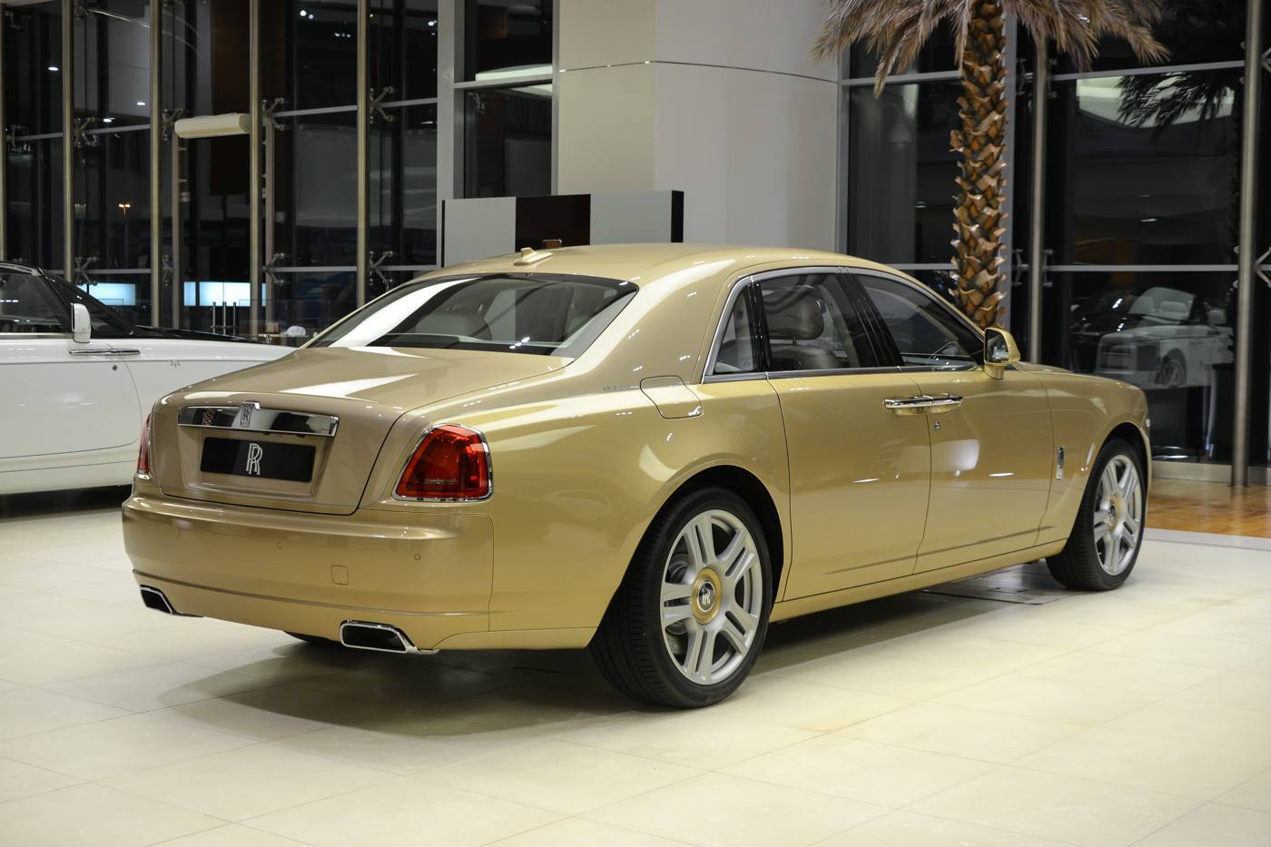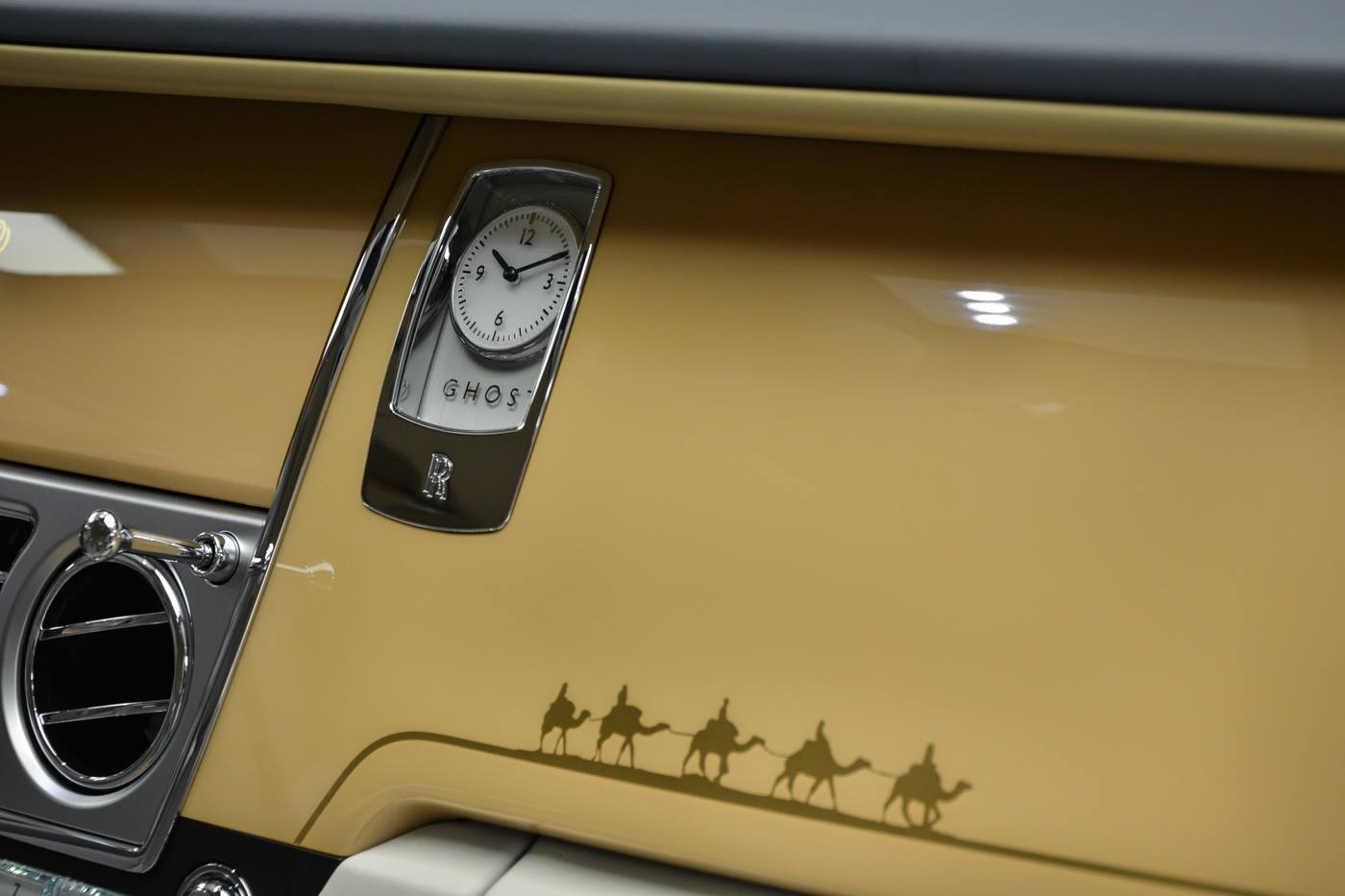 Chiếc Rolls-Royce Ghost phiên bản cá nhân hóa Oasis Edition, do Rolls-Royce Abu Dhabi thực hiện. Ghost Oasis Edition nổi bật nhờ màu sơn ngoại thất vàng cát, được lấy cảm hứng từ những đồi cát vùng Trung Đông.