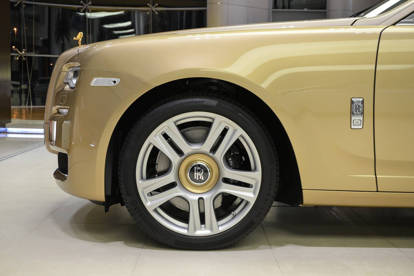 Chất liệu vàng còn được sử dụng cho biểu tượng Spirit of Ecstasy phía trước đầu xe. Biểu tượng này có thể tự động ẩn xuống bên dưới khi người dùng nhấn nút khóa xe.
