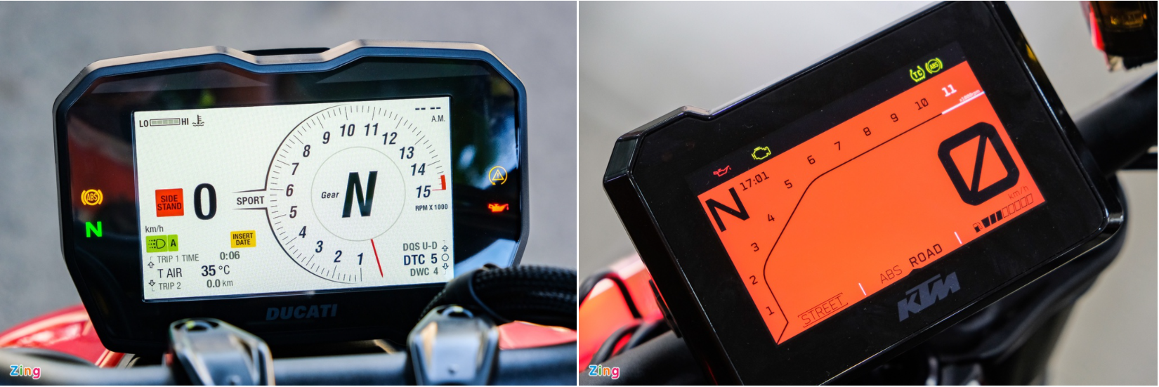 Bảng đồng hồ của 2 xe đều sử dụng màn hình màu TFT kích thước 5 inch, hiển thị đầy đủ các thông tin cần thiết như tốc độ, vòng tua, số đang gài, nhiên liệu... Bảng đồng hồ của 2 xe đều có khả năng kết nối với điện thoại thông minh qua các ứng dụng do hãng phát hành.