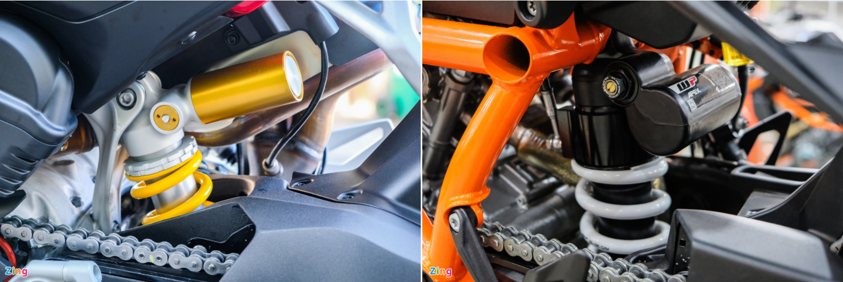 Hệ thống treo trên Streetfighter V4 là loại upside down Showa BPF 43 mm ở phía trước và giảm xóc đơn Sachs ở phía sau. Trong khi đó, 1290 Super Duke R được trang bị giảm xóc trước/sau của WP Apex.