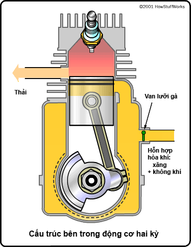 Động cơ 2 thì chỉ gồm 2 giai đoạn chính là sinh công và nén