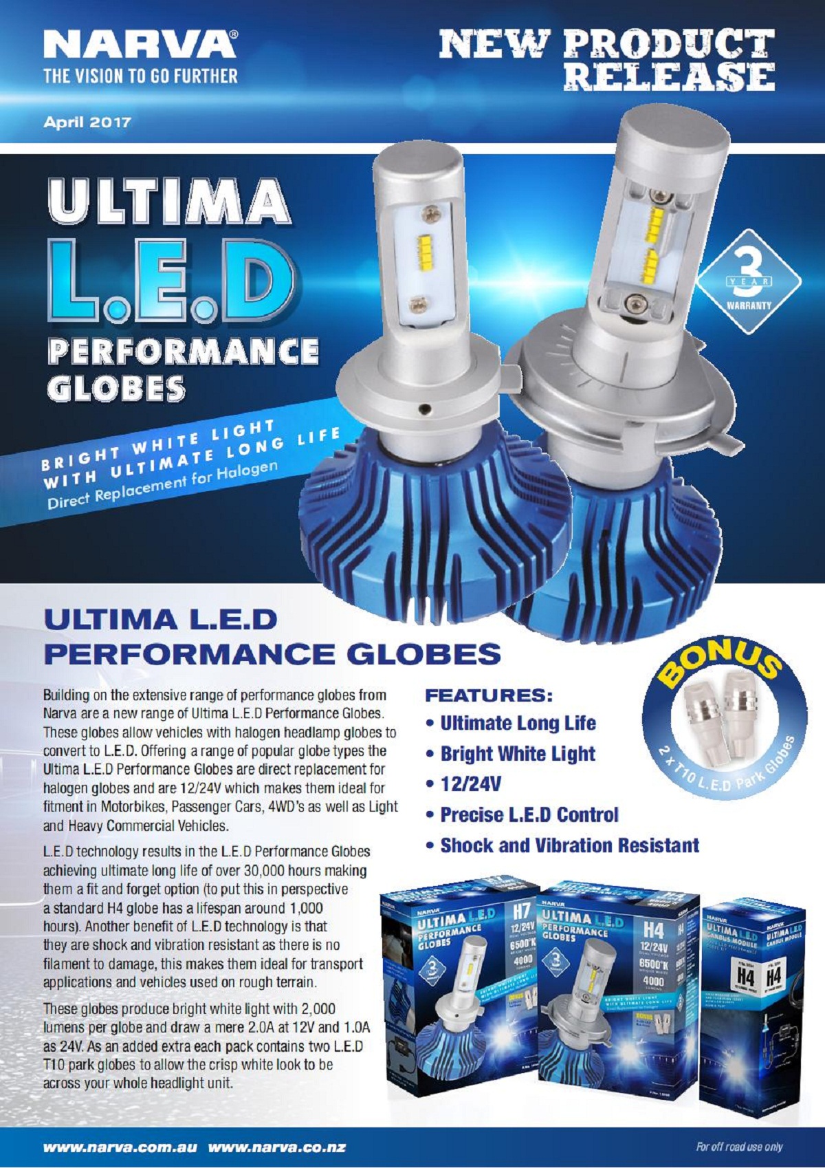 Đã có mặt tại việt Nam hơn 10 năm qua, bóng đèn pha cốt sương mù NARVA ULTIMA LED nhập khẩu từ Úc cũng là sản phẩm được rất nhiều khách hàng tin dùng tại Nam Vũ Auto.