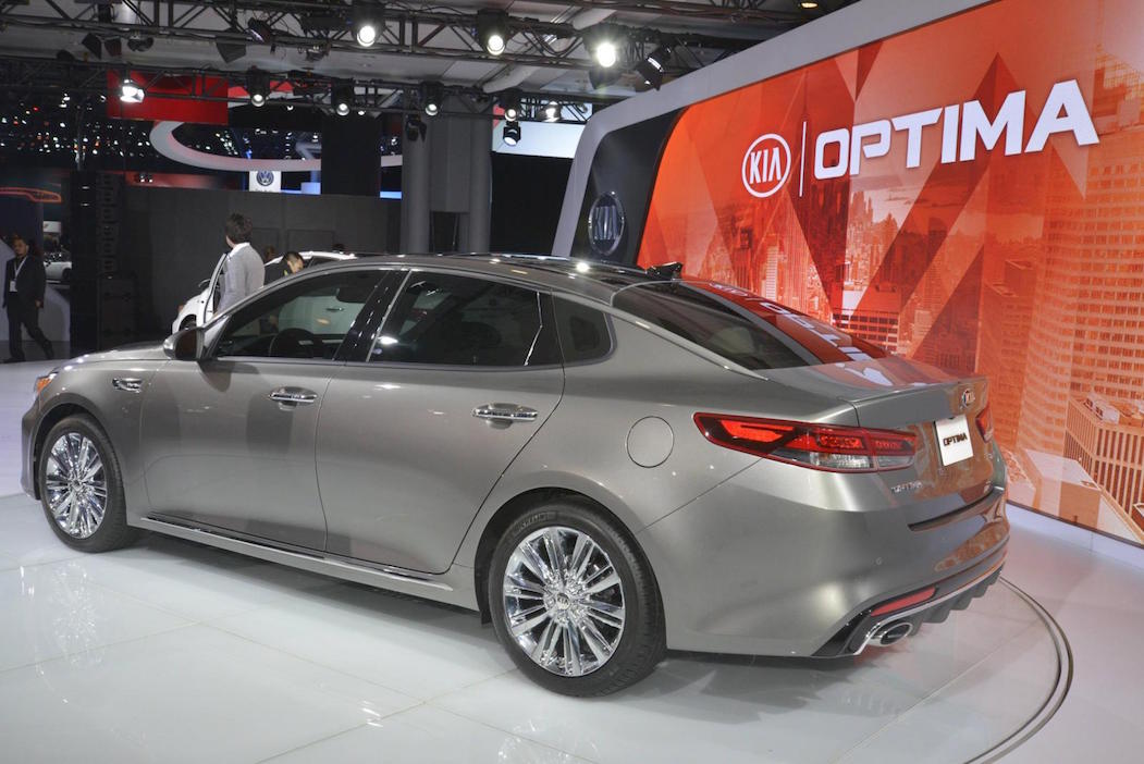 Tạo ấn tượng vừa sang trọng, vừa thể thao, chiếc xe được trang bị những đèn pha mỏng, sắc sảo, cùng lưới tản nhiệt "tiger nose" truyền thống của Kia nay đã được mạ chrome và các khe hút gió theo phong cách xe thể thao ở phía dưới. Tuy nhiên, chỉ có những phiên bản cao cấp mới được trang bị đèn pha HID. Cũng giống như phần đầu, đuôi xe mới của Optima được thiết kế để khiến nó trông thon gọn và cao cấp hơn trước. Điểm khác biệt lớn nhất đó là các đèn hậu được kéo dài ra hai bên và sử dụng công nghệ LED. Ngoài ra, cột C của xe cũng không giống như thế hệ hiện tại.