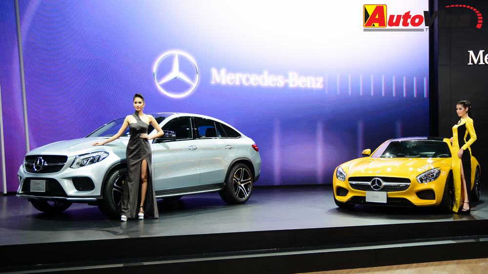 Mercedes-Benz sở hữu gian hàng có diện tích lớn nhất triển lãm, nơi trưng bày chiếc GLE hoàn toàn mới, CLA phiên bản Shooting Brake, V-Class và C-Class BlueTEC HYBRID. Chiếc AMG-GT từng ra mắt tại Việt Nam từ trước cũng có mặt.