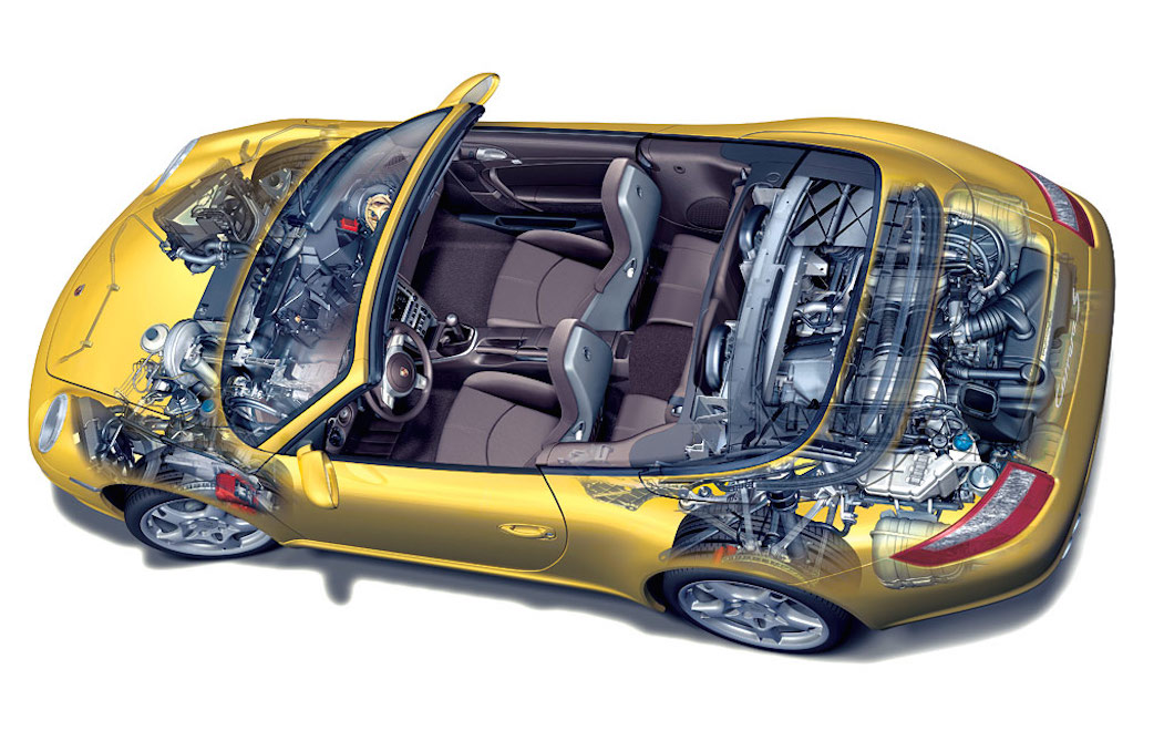 - Động cơ đặt sau, dẫn động cầu sau (RR): Động cơ và hộp số nằm hoàn toàn phía sau đuôi xe, truyền sức mạnh trực tiếp tới các bánh sau. Đây là kiểu bố trí hiếm gặp trên các xe hiện đại.