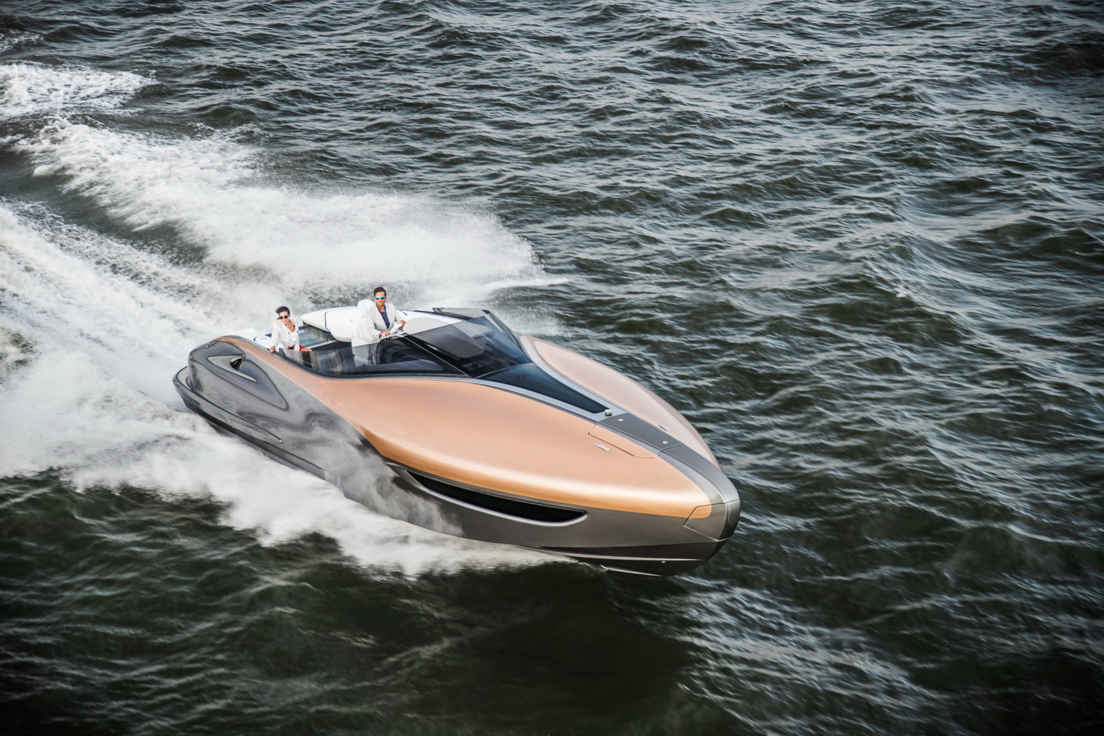 Toàn bộ thân vỏ dài tới 12,7m của chiếc du thuyền được làm từ vật liệu cao cấp CFRP (sợi carbon gia cố bên trong nhựa) thừa hưởng từ siêu xe LFA.