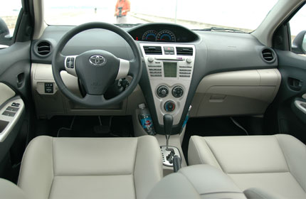 Đó mới chỉ là những cảm nhận khi nhìn Vios mới từ bên ngoài, còn về nội thất Vios 1.5G thực sự đã thể hiện một đẳng cấp mới hơn hẳn những gì mà Vios trước kia đã in sâu vào bất kì khách hàng nào của Toyota. Hệ thống ghế bọc da hoàn toàn có thể chấp nhận được với mức giá 28,900 USD. Vô lăng đã được tích hợp các phím điều khiển âm thanh, chuyển bài cho hệ thống audio trung tâm, ngoài ra riêng với bản 1.5G vô lăng đã được bọc da giúp cho người lái có một cảm giác thật hơn khi cầm vô lăng. Bảng hiện thị trung tâm của Vios 2007 đã được thiết kế hoàn toàn mới nhiều màu sắc rực rỡ, đồng hồ điện tử được tích hợp hầu hết những chức năng cần thiết như đo hành trình, đo xăng (theo số km đi được), do lưu lượng xăng sử dụng (km/lít).