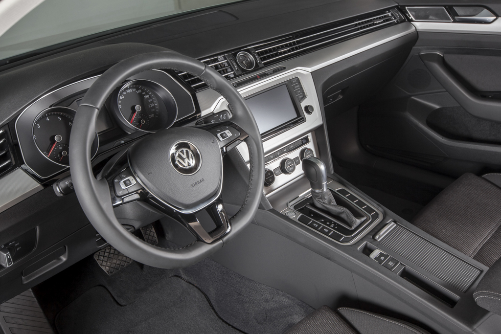 Nội thất xe được trang bị nhiều hơn vật liệu bọc da và kim loại cao cấp mang ảnh hưởng rõ nét từ Audi. Thậm chí, tại thời điểm ra mắt, VW đã gặp nhiều chỉ trích về chiến lược phát triển của tập đoàn khi thiết kế Passat thế hệ mới có quá nhiều tính năng tiệm cận với Audi A4, khiến hai sản phẩm này có nguy cơ cạnh tranh trực tiếp lẫn nhau. “Volkswagen Passat B8 là mẫu xe hạng sang trong một thương hiệu bình dân”, Martin Winterkorn, Chủ tịch HĐQT Volkswagen cho biết.