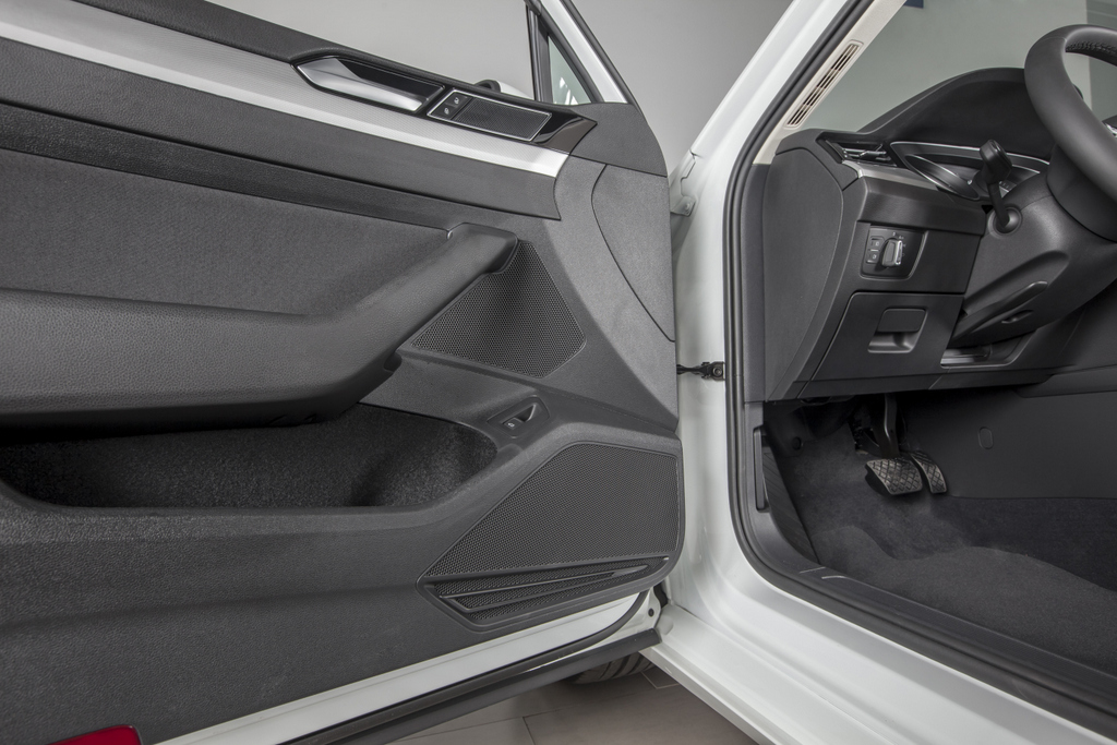 Khoang cabin của Passat BlueMotion mang đậm chất Đức. Tiếng đóng cửa chắc nịch, cách âm sàn xe vượt trội so với đối thủ. Vận hành trong điều kiện phố đông, tạp âm ít lọt vào cabin, thứ cảm nhận thường có ở dòng xe sang. Dàn âm thanh 8 loa như được tăng ‘chất’ nhờ giải pháp cách âm tốt khoang động cơ, cánh cửa và sàn xe.