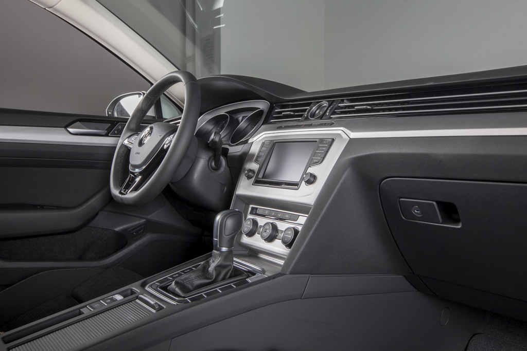 Nổi bật trong nội thất của Passat BlueMotion là cửa gió điều hoà cỡ lớn, chạy ngang bảng táp-lô được thiết kế tương tự những mẫu xe thế hệ mới của Audi như Q7, Q5 hay A4. Các chi tiết như nẹp cửa, tay nắm cửa, cửa gió điều hoà, các khe nút bấm… được mạ vật liệu nhôm Glossy tạo cảm giác sang trọng.