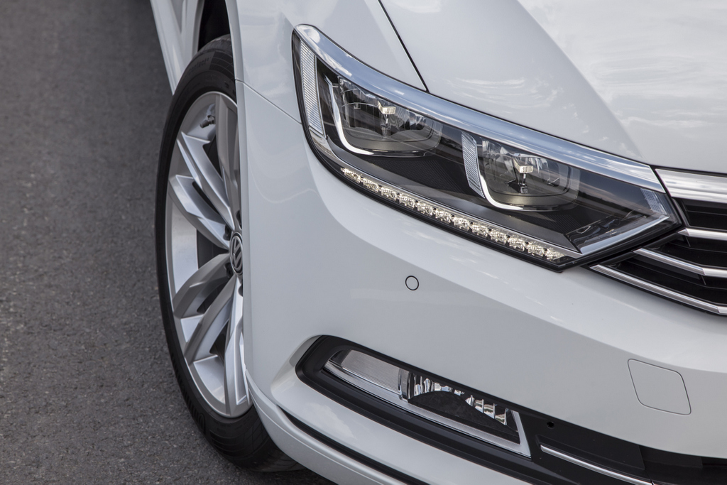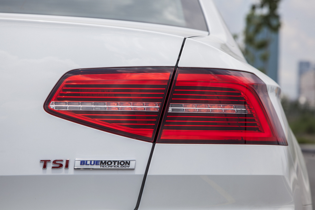 Đèn chiếu sáng, đèn định vị ban ngày, đèn hậu dạng LED. Công nghệ tự động điều chỉnh góc chiếu sáng (Dynamic Range Control) giúp Passat có góc chiếu sáng phù hợp với tốc độ và điều kiện đường sá. Ngoài ra, xe được trang bị kính chắn gió cách nhiệt tiêu chuẩn, sưởi kính hậu. Bộ vành kích thước 18inch. Để phân biệt với phiên bản TSI cũ, phiên bản Passat mới được gắn logo BlueMotion ở đuôi xe.