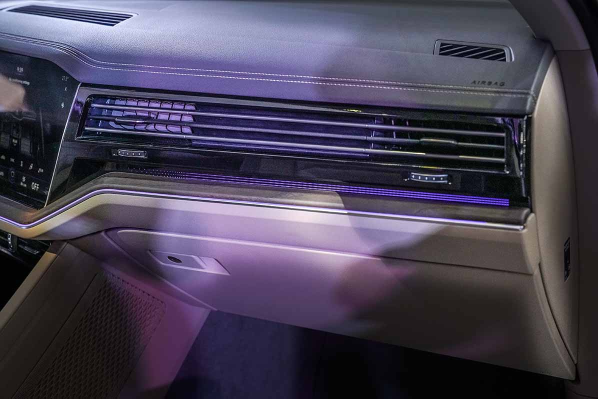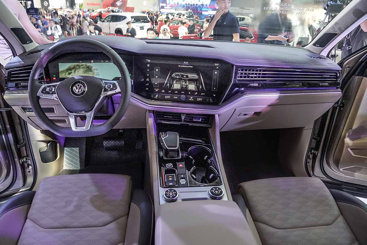 Bước vào bên trong nội thất. Ấn tượng ngay từ cái nhìn đầu tiên là khoang lái đầy tính sáng tạo và được số hoá hoàn toàn. Có thể nói đây là một Bước đột phá về thẩm mỹ và sự liên kết giữa người và xe. Cụm đồng hồ tròn truyền thống biến mất, thay thế bằng một màn hình màu 12” cùng với màn hình thông tin giải trí trung tâm 15” lớn nhất hiện nay (tương đương màn hình một chiếc Laptop). Việc dùng màn hình lớn khiến các kỹ sư Volkswagen phải sắp đặt hai cửa gió điều hòa trung tâm xuống dưới. Màn hình giải trí dạng cảm ứng, có thể điều chỉnh nhiều chức năng bằng cử chỉ tay và không cần chạm, đúng như tên gọi của nó: Innovision Cockpit – Khoang lái sáng tạo.