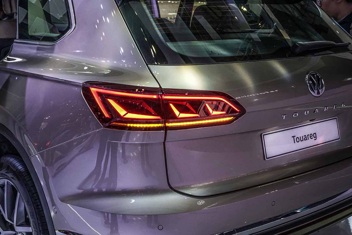 Ngoại thất Touareg 2019 có phần đầu xe hoàn toàn mới với lưới tản nhiệt mở rộng, nối liền đèn pha thích ứng dạng LED (với 128 bóng LED mỗi đèn) theo phong cách của mẫu Arteon. Đuôi xe tạo hình mới, đèn tín hiệu báo rẽ dạng LED. Đặc biệt hệ đèn LED của Touareg không dùng loại thông thường mà thay thế bằng loại công nghệ đèn LED Matrix thường thấy trên các dòng xe sang.